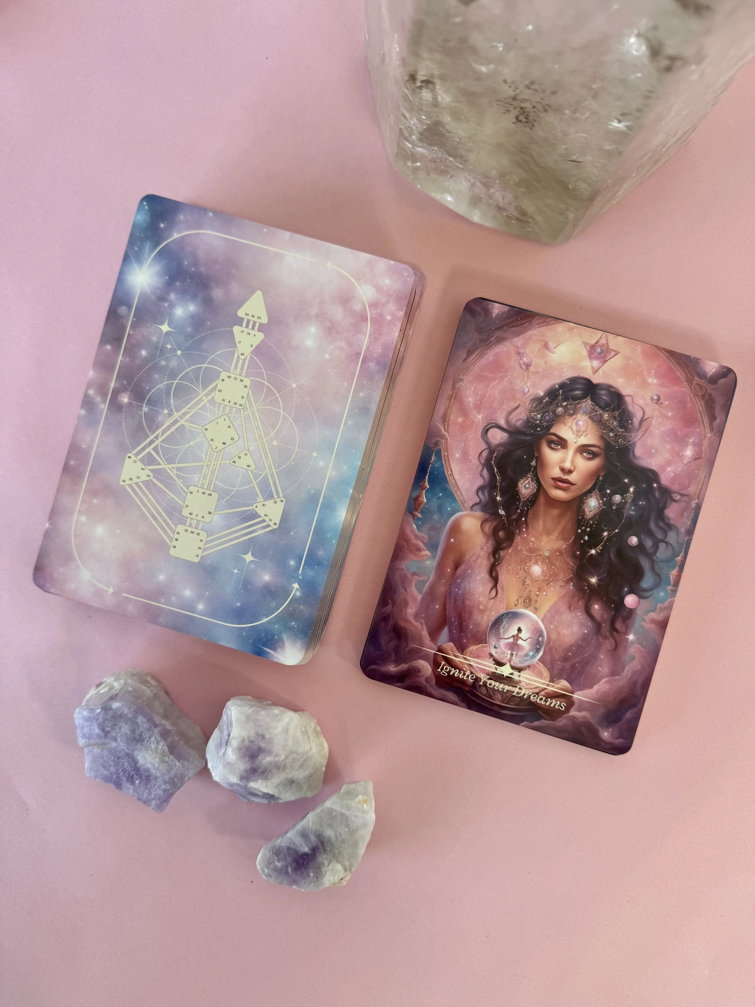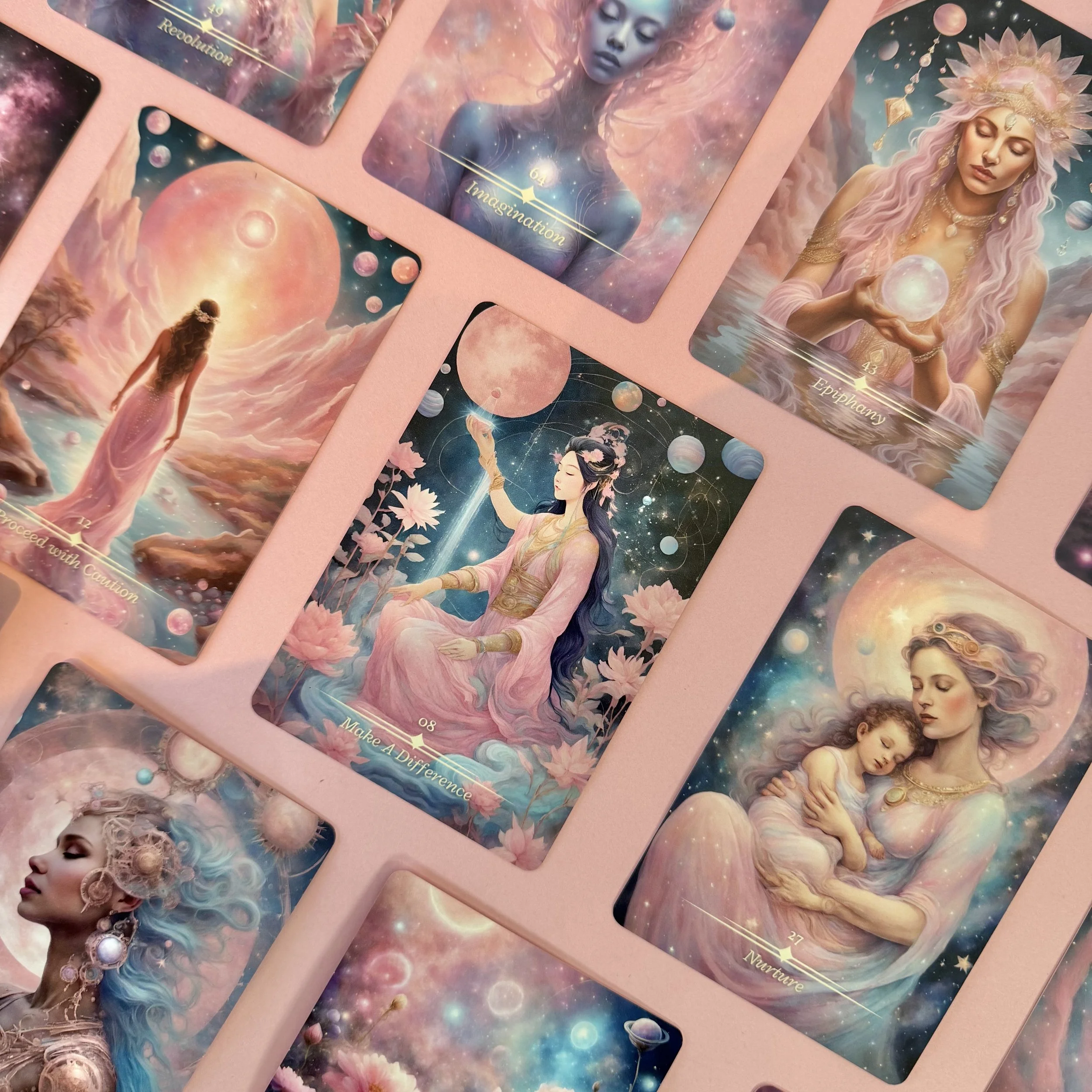 Colette Carlsson, a 3/5 sacral generator, has been on a journey of self-understanding as a creative in Los Angeles over the past 10 years. Driven by a passion for the mystical and a desire to explore the depths of self-awareness, Colette created this oracle card deck to inspire and guide others on their own paths of self-discovery and enlightenment.
